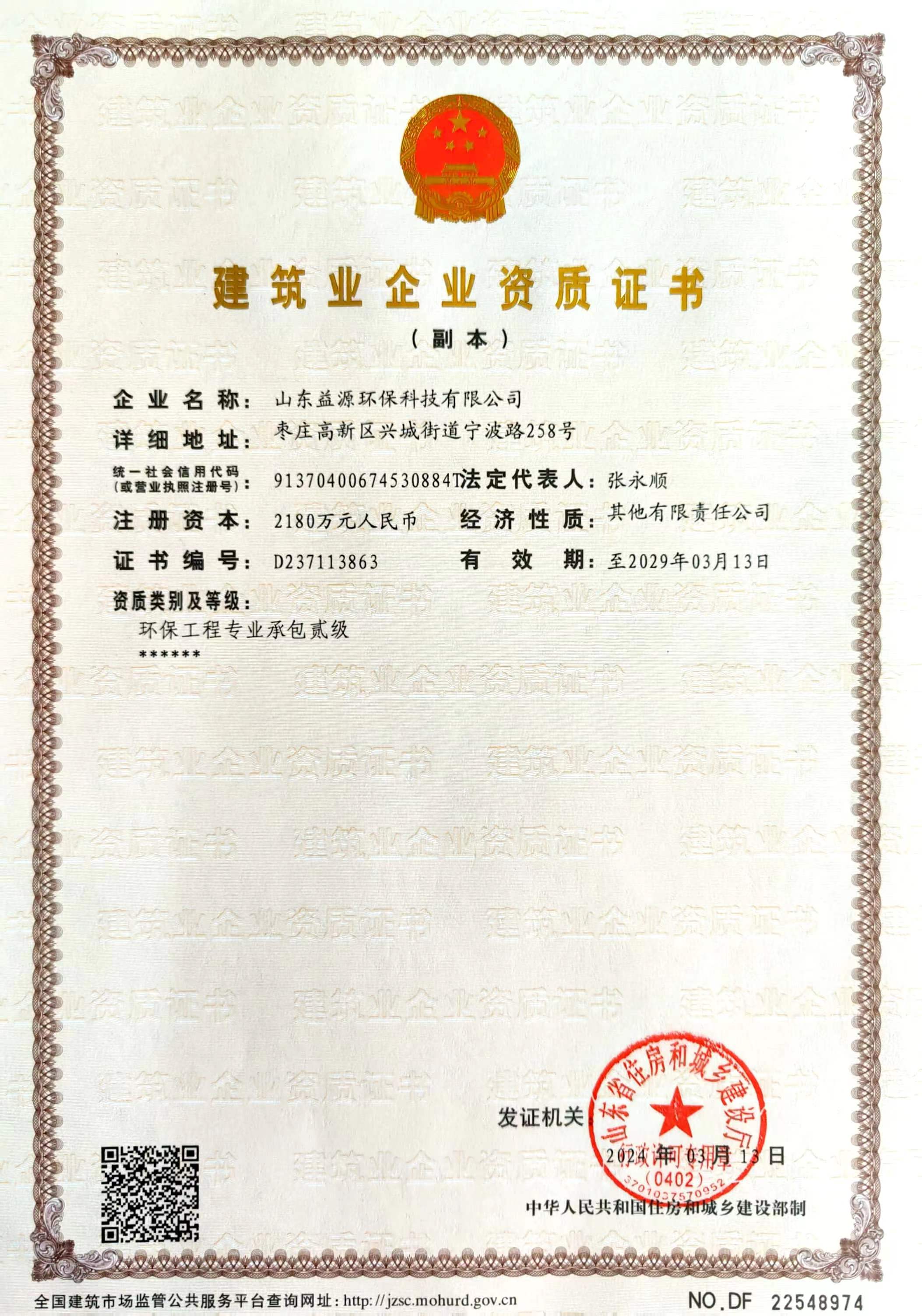 首頁 關于我們 資質(zhì)證書環(huán)保工程專業(yè)承包二級